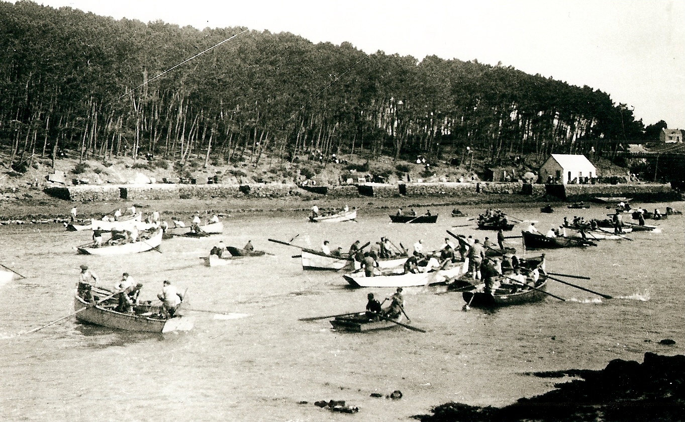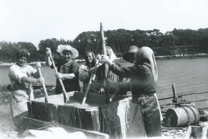 Décollage du naissain au Baël chez Rose et Job Le Clanche - 1950 (Crédit : Alain Brulé) -